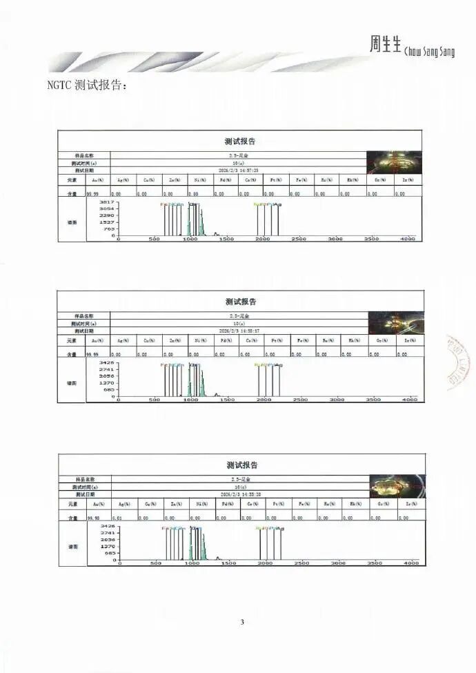 近日,有消息称,周生生广东省清远市一门店所售足金挂坠被检测出含铁银钯,不同点位纯度差异超35%。 针对此事,周生生官方微博2月3日晚间再发说明称,针对顾客反馈的相关情况,周生生高度重视,第一时间复核了当时出厂批次的破坏性检测报告,报告显示该批次货品质量完全符合国家相关标准。 同时,今日2月3日,周生生已将同批次同款福袋送检至国家珠宝玉石首饰检验集团有限公司(NGTC),采用 X 射线荧光谱法(XRF)进行检测,该福袋货品的检测结论为足金饰品(报告编号:P-ZSSA2121621)。NGTC 对该货品随机选取3个检测点,检测所得金含量结果依次为 99.99%、99.99%、99.98%。
